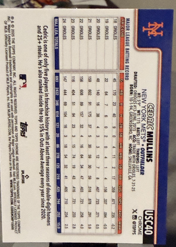 2025 Topps Chrome Update Cedric Mullins #USC40