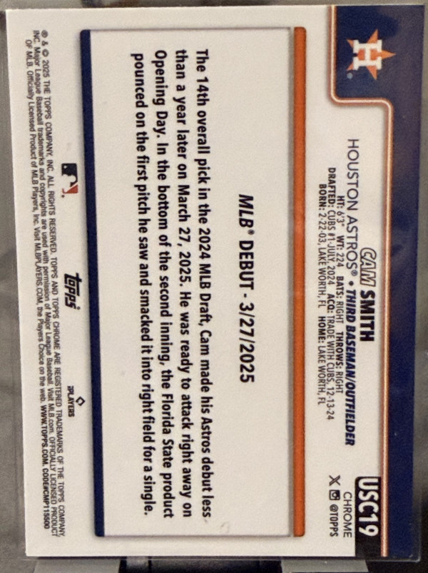 2025 Topps Chrome Update Series - Rookie Debut Cam Smith #USC19 (RC)