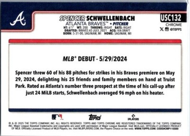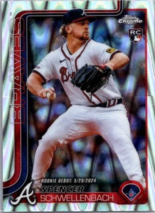 This is a nice example of a 2025 Topps Chrome Update #USC132 Spencer Schwellenbach RayWave Refractor