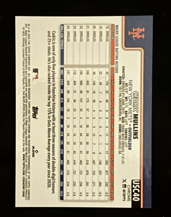 2025 TOPPS CHROME UPDATE USC40 CEDRIC MULLINS ORANGE GEOMETRIC