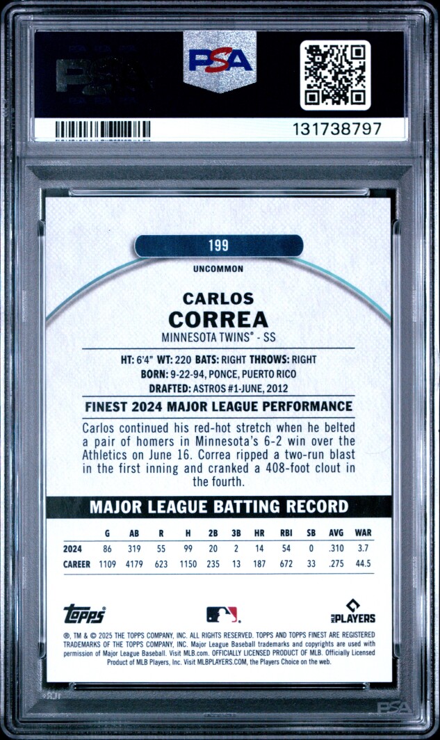 You are purchasing a 2025 Topps Finest Carlos Correa #199 Pearl Checkerboard SSP /40 PSA 10. Thank you for looking.