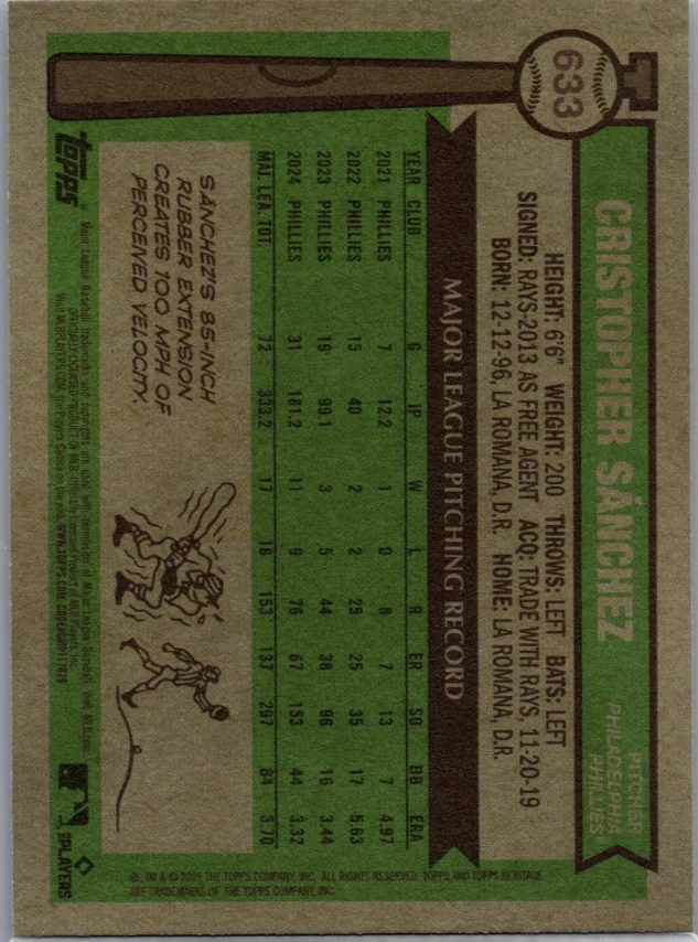 This is a nice example of a 2025 Topps Heritage #633 Cristopher Sánchez Dark Blue Border