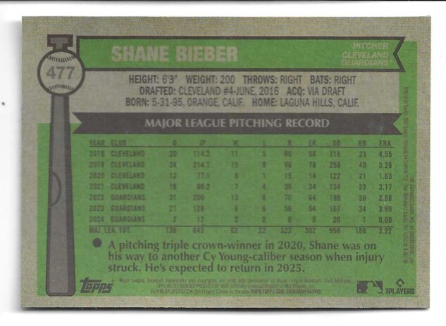 2025 TOPPS HERITAGE CHROME SILVER SPARKLE REFRACTORS #477 SHANE BIEBER