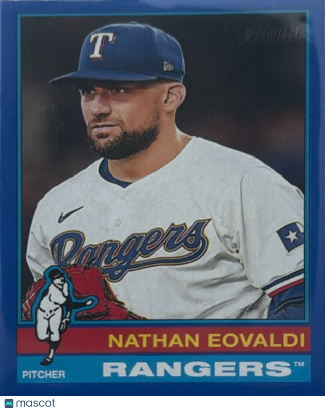 The card is in near mint or better condition, ensuring quality and value for years to come. Whether you're a dedicated Nathan Eovaldi supporter or building your Texas Rangers set, this limited parallel is a must-have. Grab it now before it's gone—these serial numbered Heritage parallels are hot on eBay and won't last long!