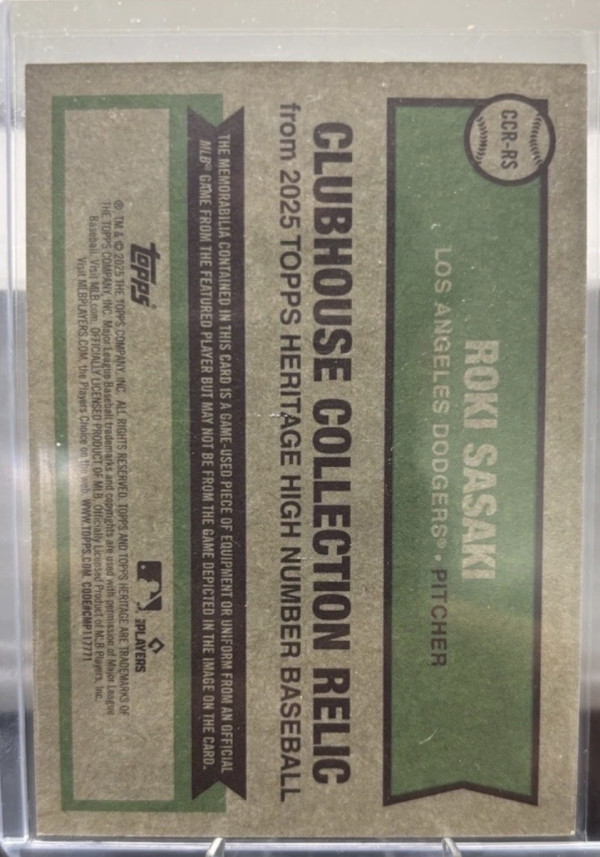 2025 Topps Heritage He Roki Sasaki Clubhouse Collection Relic Gold /99 #CCR-RS