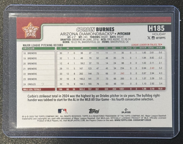 2025 Topps Holiday Corbin Burnes Holiday Back Variation #H185 SP