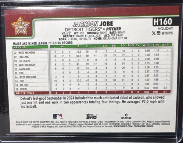 2025 Topps Holiday Mega Jackson Jobe Cookie Back SP Tigers