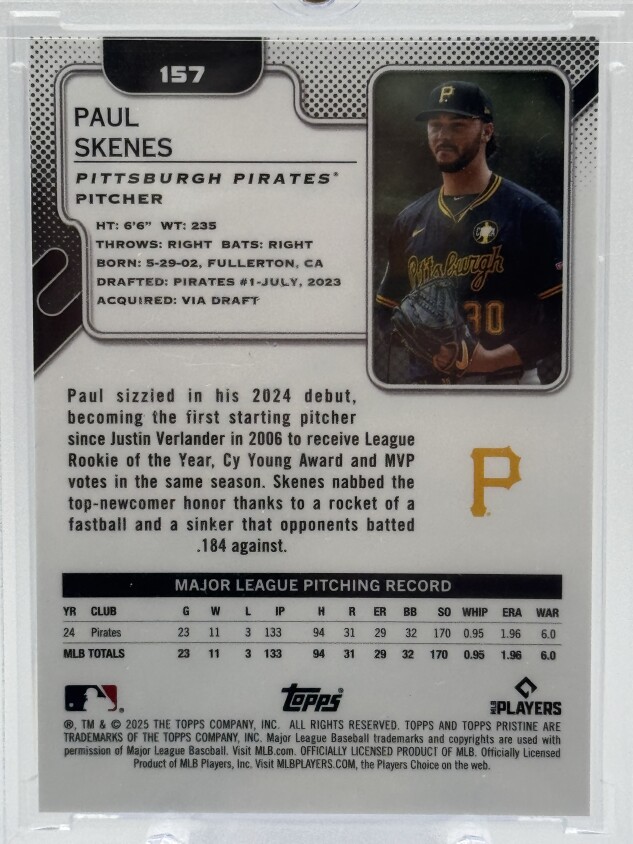 2025 Topps Pristine Paul Skenes Red #’d 4/5 SSP Pittsburgh Pirates #285