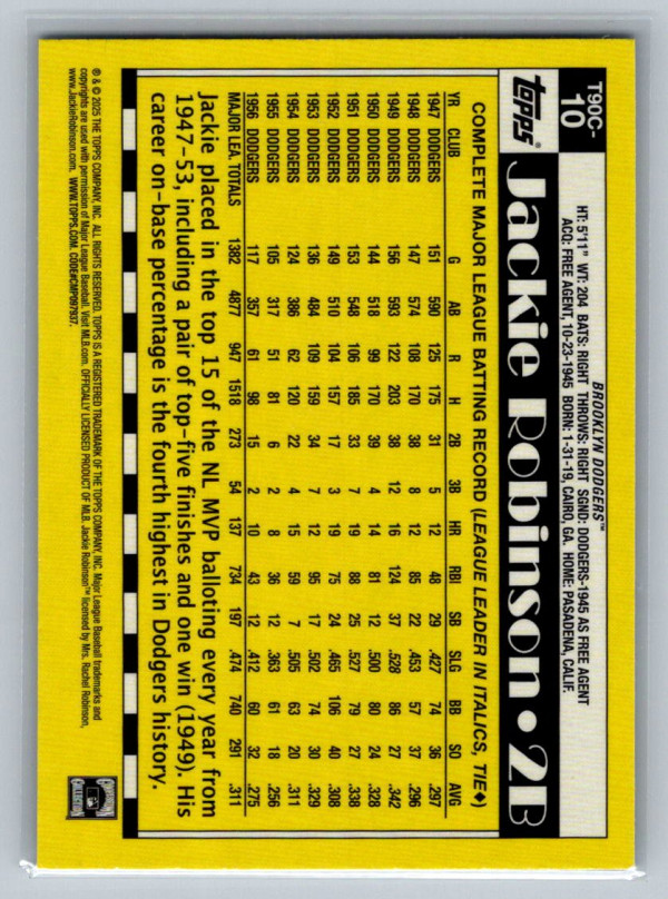 You are purchasing a 2025 Topps Series 1 Silver Pack Jackie Robinson #10 1990 35th Anniversary Dodgers. You will receive the exact item in the photographs. Thank you for looking.