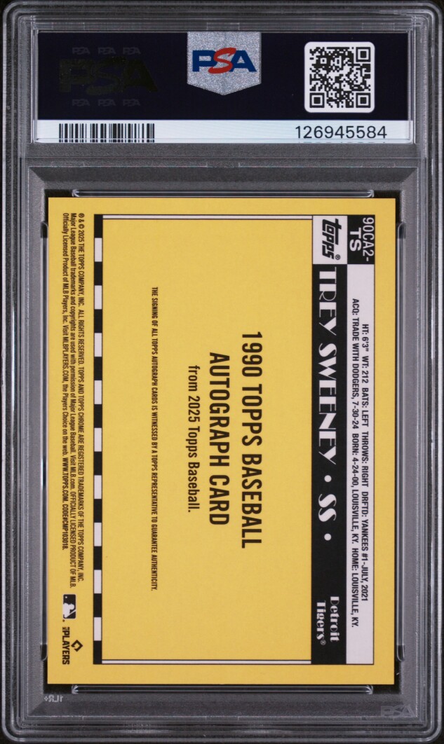 2025 Topps Silver Pack Baseball Trey Sweeney #TS Gold RC Auto 07/50 PSA 10