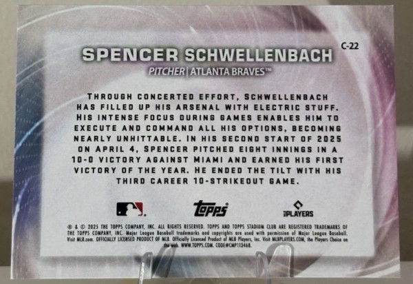 2025 Topps Stadium Club Concentration #C-22 Spencer Schwellenbach (RC)
