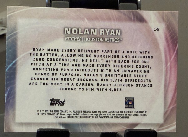2025 Topps Stadium Club- Concentration Nolan Ryan #C-8 - Houston Astros HOF