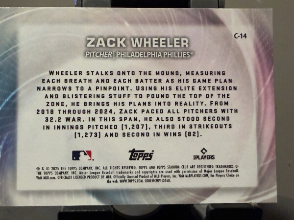 2025 Topps Stadium Club - Concentration Zack Wheeler #C-14