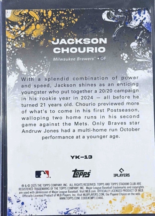 2025 Topps Stadium Club Jackson Chourio #YK-13 Yours For The Taking Brewers