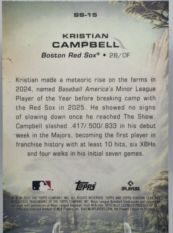 2025 Topps Stadium Club Savage Sluggers #SS-15 Kristian Campbell (RC)