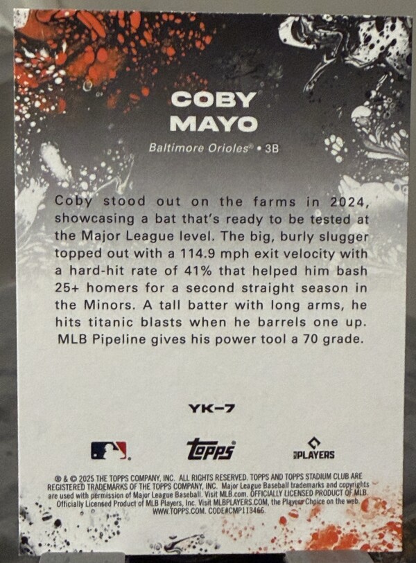 2025 Topps Stadium Club - Yours for the Taking Coby Mayo #YK-7 (RC)