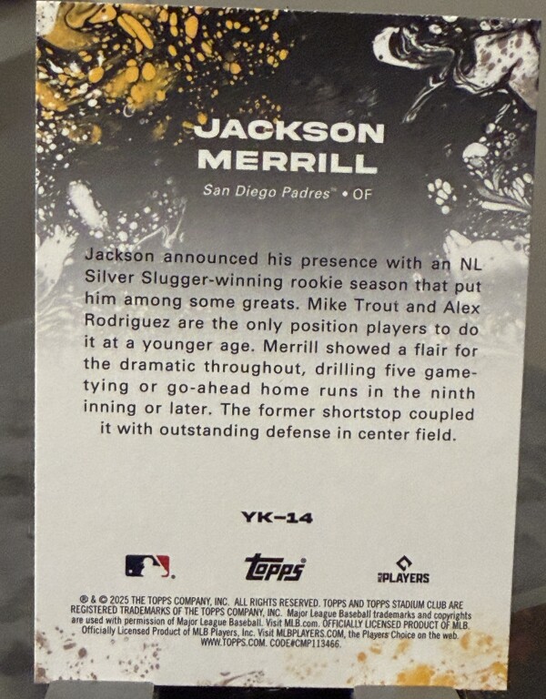 2025 Topps Stadium Club - Yours for the Taking Jackson Merrill #YK-14