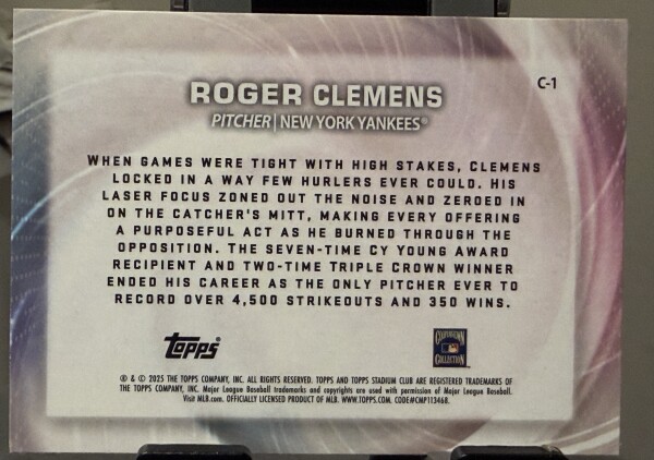 2025 Topps Stadium Club Concentration Roger Clemens New York Yankees #C-1