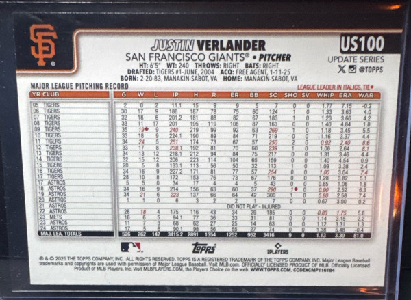 2025 Topps Update Justin Verlander Holiday Jack O'Lantern #US100