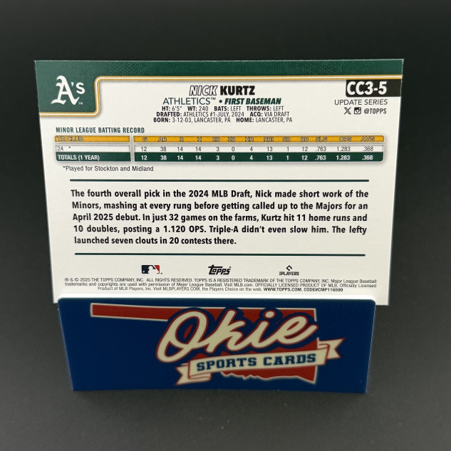 You are purchasing a 2025 Topps Update Series Nick Kurtz #CC3-5 Image Variation RC. You will receive the exact item in the photographs. Thank you for looking.
