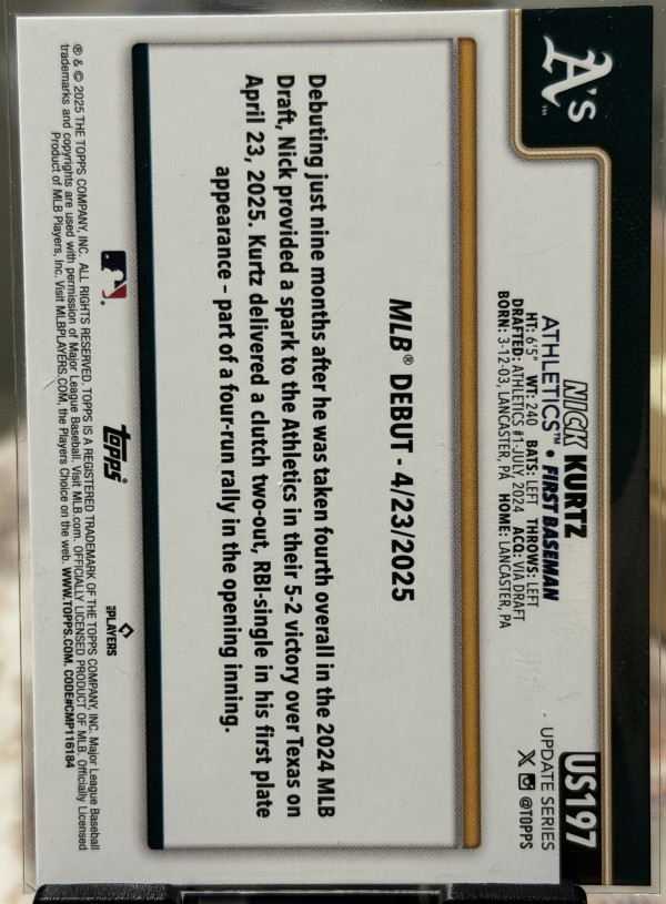 2025 Topps Update Series - Rookie Debut Nick Kurtz #US197 (RC)