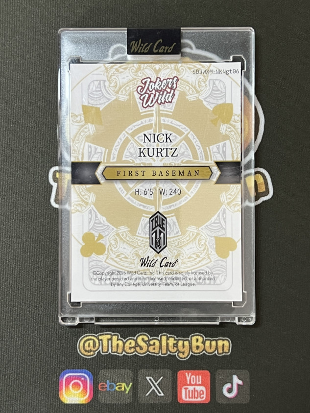 2025 Wild Card Jokers Wild Nick Kurtz 1/1 Rookie Holiday Candy Cane