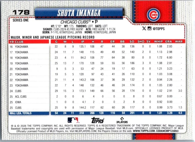 In 2026 Shota Imanaga played for the Chicago Cubs.