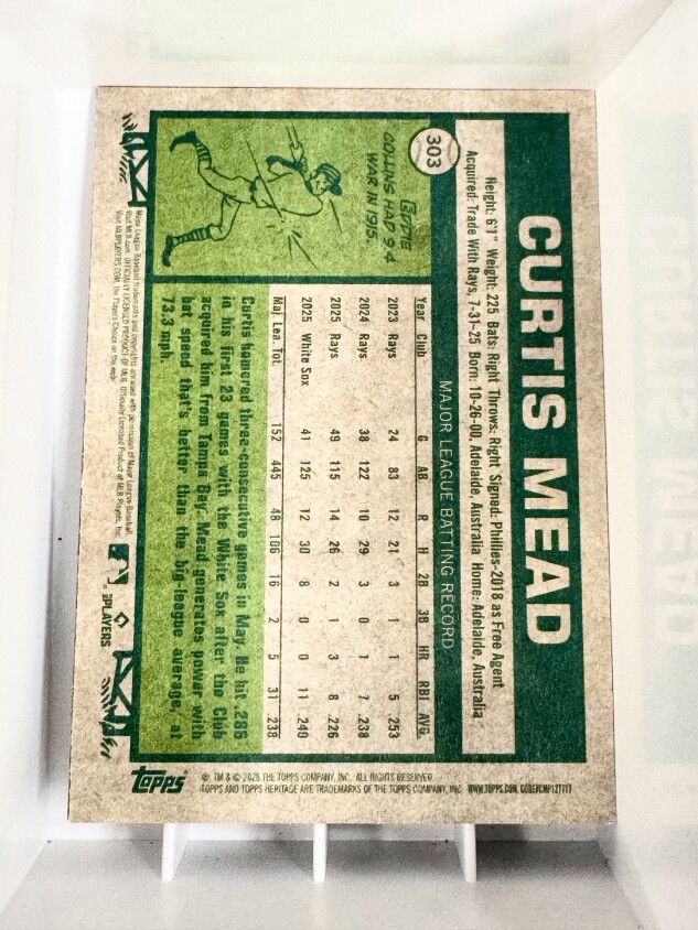 You are purchasing a 2026 Topps Heritage Curtis Mead #303. You will receive the exact item in the photographs. Thank you for looking.