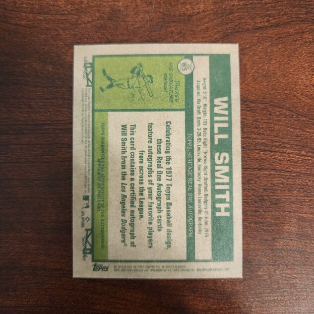You are purchasing a 2026 Topps Heritage Will Smith Auto. You will receive the exact item in the photographs. Thank you for looking.