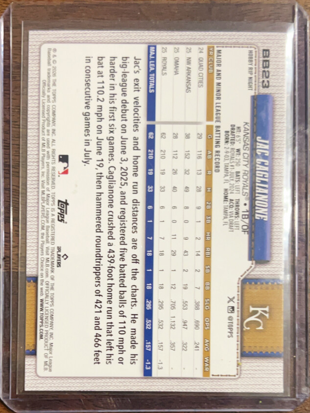 You are purchasing a 2026 Topps Rip Night Jac Caglianone #BB23 RC. You will receive the exact item in the photographs. Thank you for looking.