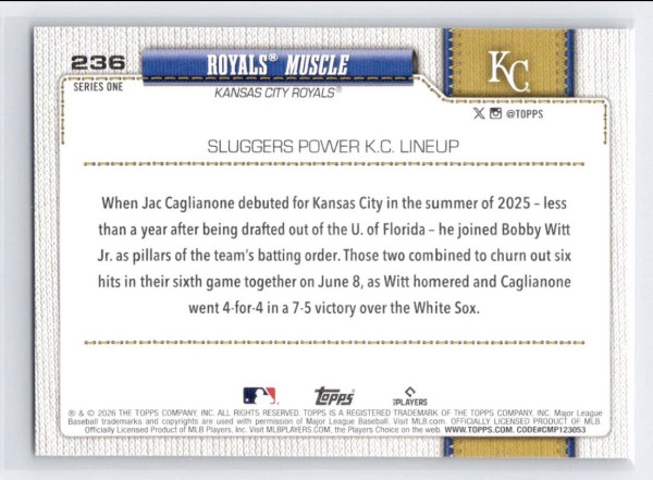 2026 Topps Series 1 #236 Royals Muscle Caglianone/ Witt Jr. Fanatics Exclusive #235