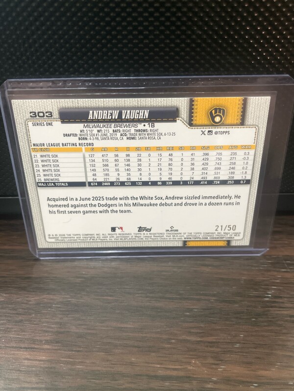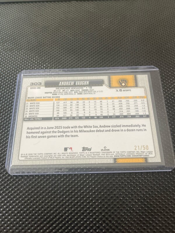 2026 Topps Series 1 Andrew Vaughn Gold Glitter 21/50
