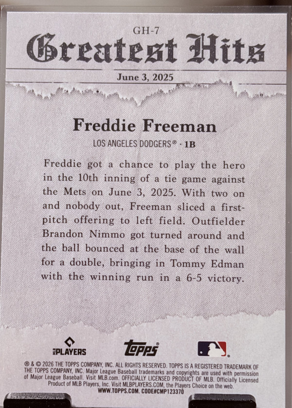 2026 Topps Series OneFreddie Freeman Greatest Hits #GH-7 - Dodgers