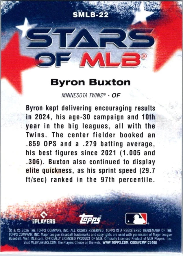 This is a nice example of a 2026 Topps #SMLB-22 Byron Buxton Stars of MLB