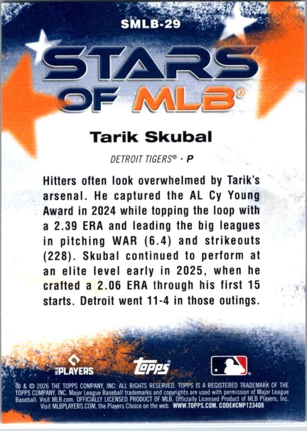 This is a nice example of a 2026 Topps #SMLB-29 Tarik Skubal Stars of MLB