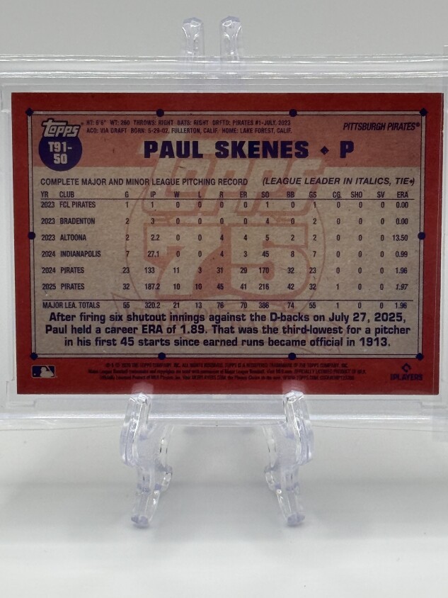 2026 Topps #T91-50 Paul Skenes 1991 Topps 35th Orange (Series One) # 20/25
