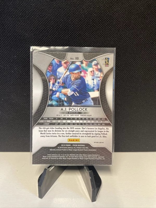 Own a piece of baseball history with this 2019 Panini Prizm trading card featuring A.J. Pollcok of the Los Angeles Dodgers. Displaying the player's image and team logo, this original card is made of high-quality card stock and comes with a silver Prizm parallel/variety feature. It's a great addition to any collection of sports trading cards and a must-have for Major League Baseball (MLB) fans.
