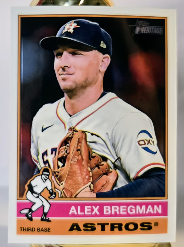 The product is a 2025 Topps Heritage Chrome trading card featuring Alex Bregman of the Houston Astros. This baseball card is part of the Major League Baseball (MLB) set and showcases the player in a parallel/variety design. Manufactured by Topps, this card is a part of the base set for the 2025 season, making it a coveted item for fans and collectors of baseball trading cards.