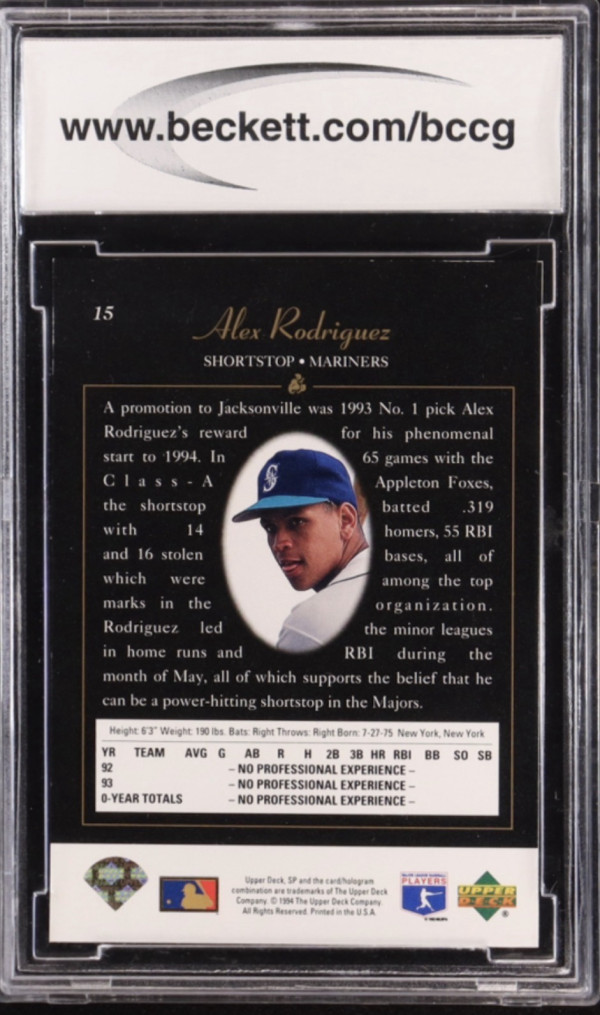 Alex Rodriguez 1994 Upper Deck SP Premier Prospects #15 RC (BCCG 10)