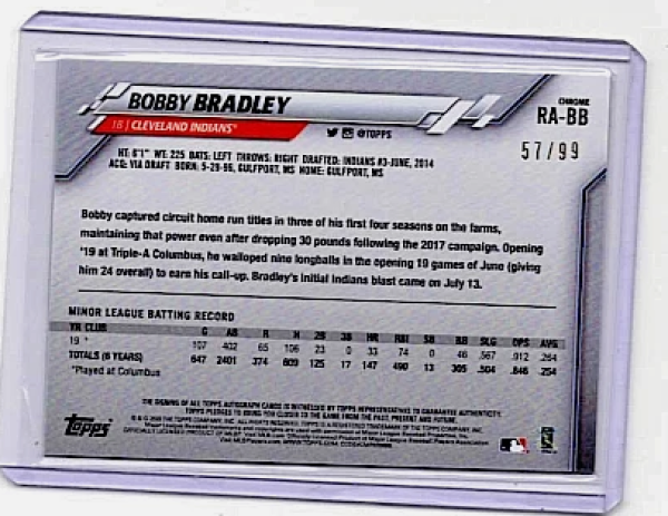 Bobby Bradley Rookie Auto 2020 Topps Chrome Rookie Autographs Green Refractor