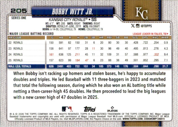 Bobby Witt Jr. 2026 Topps #205 Polka Dot Kansas City Royals