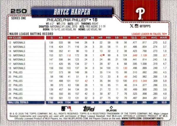 Bryce Harper 2026 Topps #250 Polka Dot Philadelphia Phillies