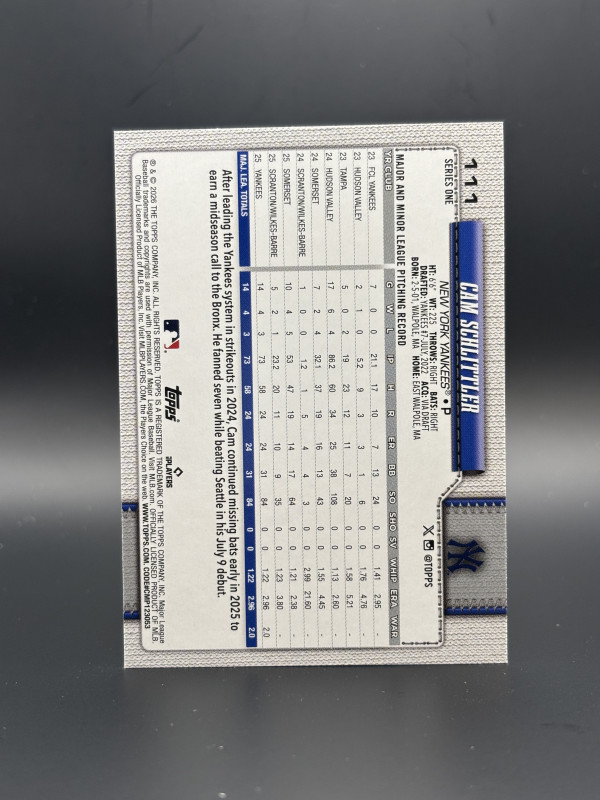 Cam Schlittler rookie diamante insert.