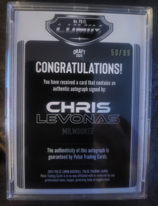 Chris Levonas 2024 Pulse Lumin Draft #PD-CL Autographs Milwaukee Brewers 50/9[