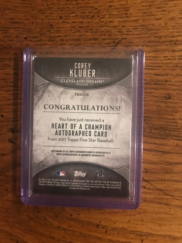 Corey Kluber Autograph 2017 Topps Heart Of A Champion. Numbered 31/35. Mint Condition.