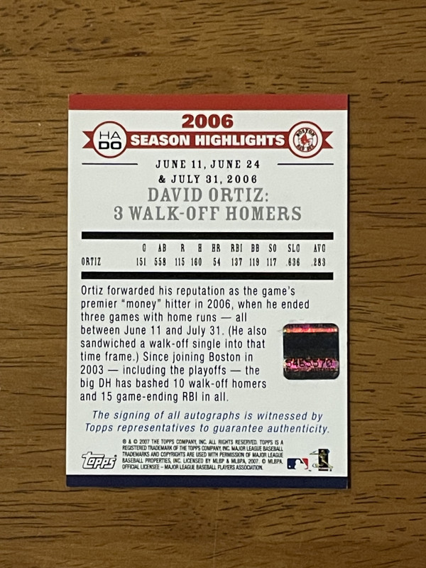 David Ortiz 2007 Topps highlights auto