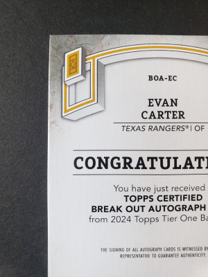 2024 Topps Tier One Break Out /299 Rookie Auto of Evan Carter