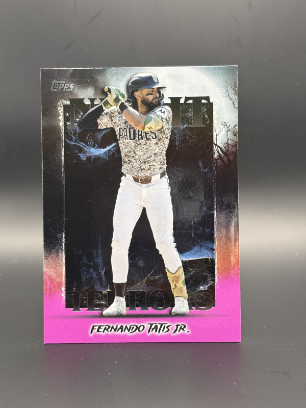 Fernando Tatis Jr. pink night terrors parallel, short print pulled from 2025 Topps Update Series.