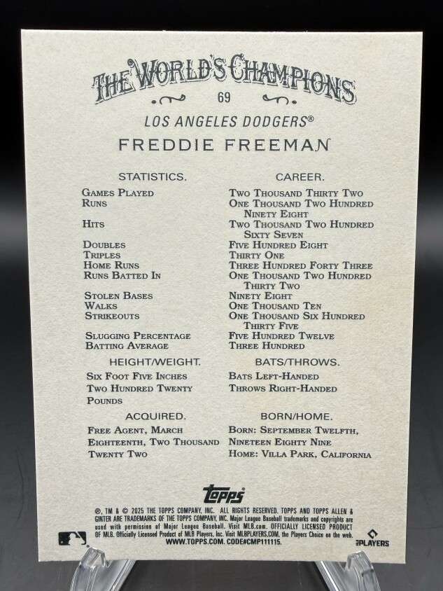 Freddie Freeman 2025 Topps Allen & Ginter #69