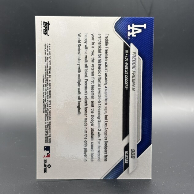 World Series 2025 Topps Now card. #908 in Topps Now Archives. "Game 3 walk-off HR seals 18-inning instant classic."